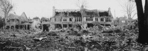 The exact number of bombs that fell on Norwood during the Blitz and subsequently is difficult to estimate but 13 V1s and one V2 landed on West Norwood itself, the York Hill area receiving three V1 strikes. Bombs fell in the cemetery damaging family memorials, and a V1 badly damaged the Nonconformist chapel and the Lodge.  There were 17 V1 strikes on South Norwood, and one V2. The picture below shows the devastation of the V2 strike on Regina Road/Sunny Bank north of Norwood Junction on 20 October 1944 which killed 6, one victim being buried at West Norwood.